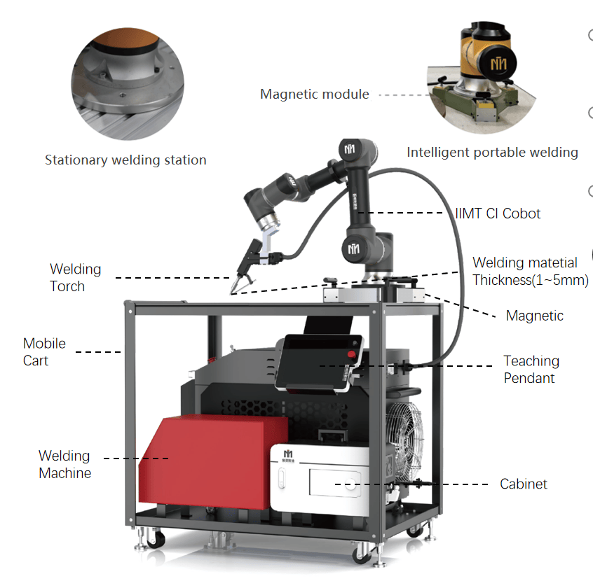 在焊接场景中,公司的便携式焊接机器人(MIG 与激光两种类型)成为IMANE口中 “重塑工业边界” 的代表产品。“这类机器人采用磁吸附底座设计,可实现垂直、倒置、侧装等多姿态安装,搭配激光焊缝跟踪系统,能完成 1-5mm 厚度材料的直焊、摆焊、圆弧焊等多种焊接工艺。” IMANE以传统制造业为例,说明该产品如何解决焊接环境复杂、年轻技术工人短缺的痛点 —— 通过拖拽示教技术,普通工人无需掌握复杂编程,即可快速完成焊接任务设置,大幅降低操作门槛,同时保证焊接质量稳定性,目前已在汽车零部件、机械制造等领域广泛应用。